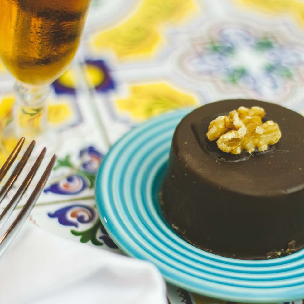Creme de nozes com cobertura de chocolate meio amargo.