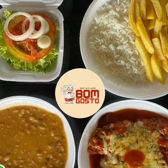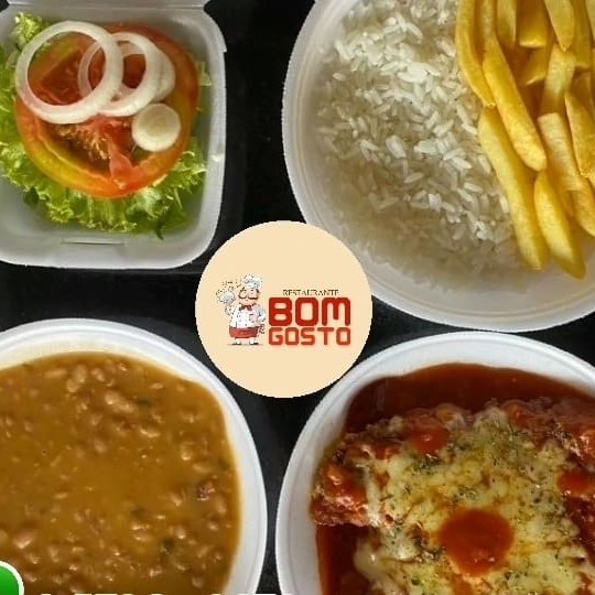 Arroz, Macarrão, Vinagrete, Farofa, Ovo, Fritas e Salada. Feijão