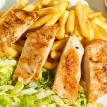 Filé de frango e Calabresa. Acompanha: Arroz, feijão, farofa, macarrão, fritas e salada.