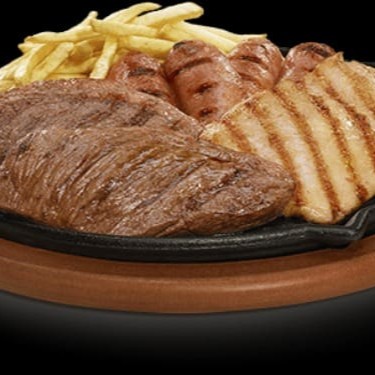 Bife, Filé de frango, Linguiça e Frango. Acompanha: Arroz, Feijão, Fritas, Farofa, molho de pimenta e salada.