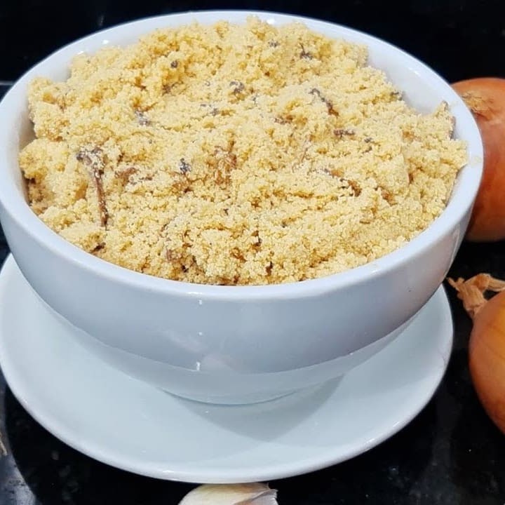 Arroz, Macarrão, Vinagrete, Farofa, Fritas e salada. Feijão.