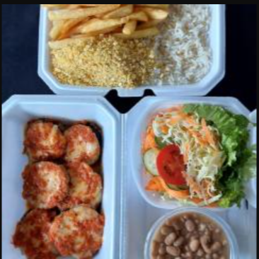 Deliciosos pratos com carne a parmegiana (empanado e coberto com molho de tomate da casa e queijo muçarela). Acompanha arroz, feijão, salada e dois acompanhamentos. Serve de 3 a 4 pessoas.
