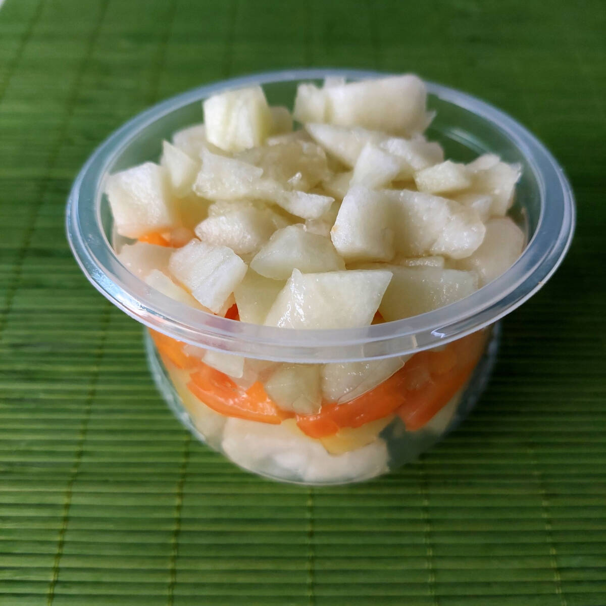 Pote com 250 ml contendo salada de frutas sortidas