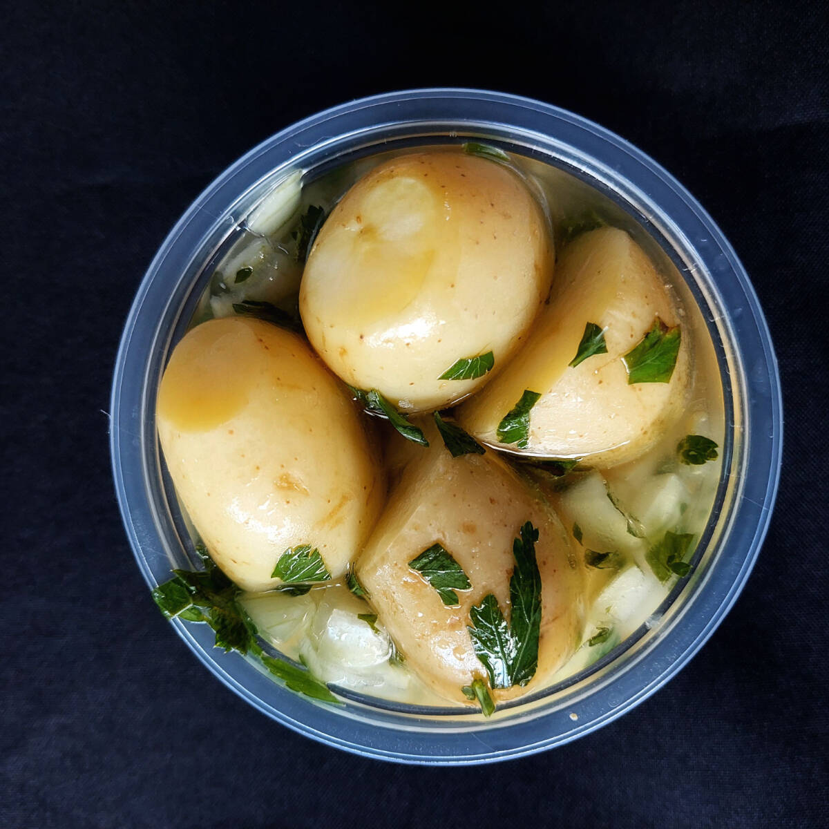 Pote 250 ml com salada de batata temperada com salsinha, cebola vinagre e azeite