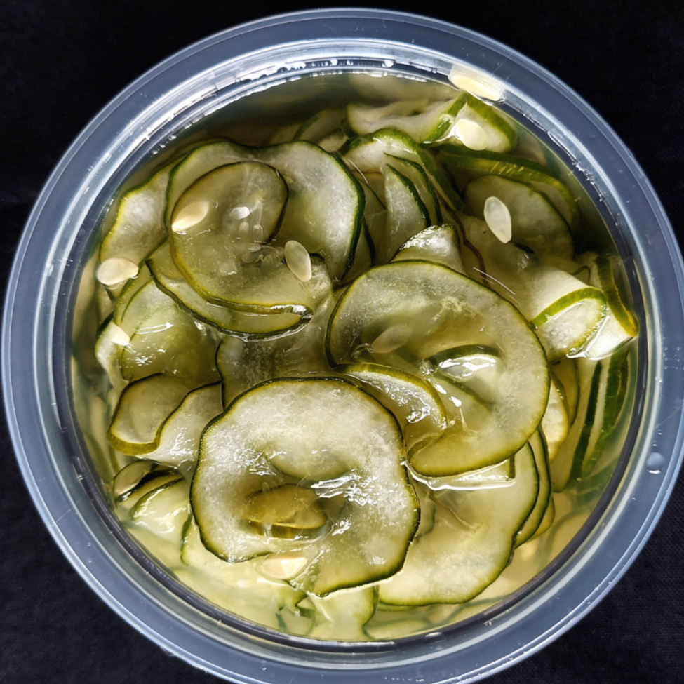 Salada de pepino japonês, temperado com sal, açúcar e vinagre