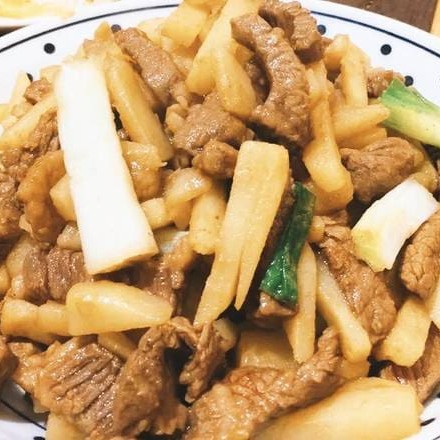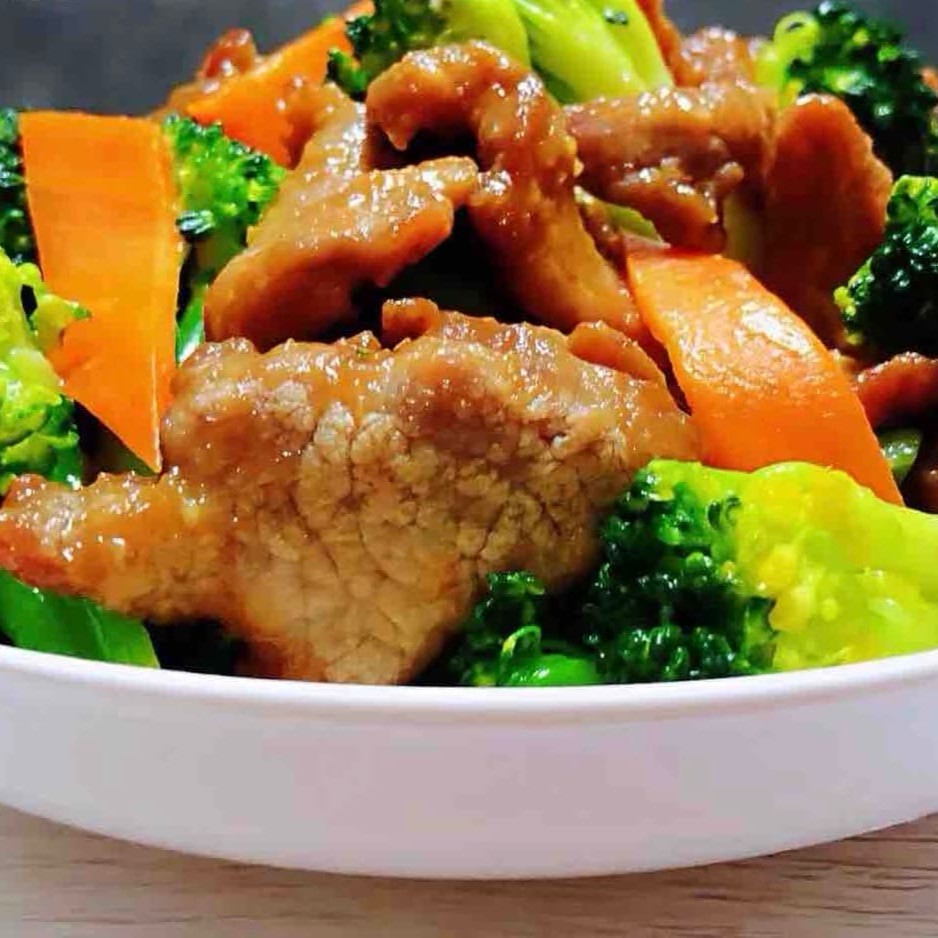 Carne fatiada com brócolis e cebola,torrado ao molho especial