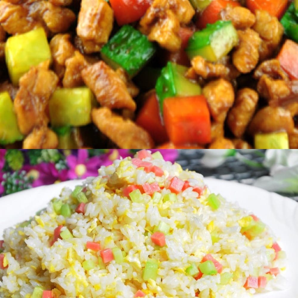 Arroz com ovo,frango,cenoura,cebolinha com molho de soja na wok