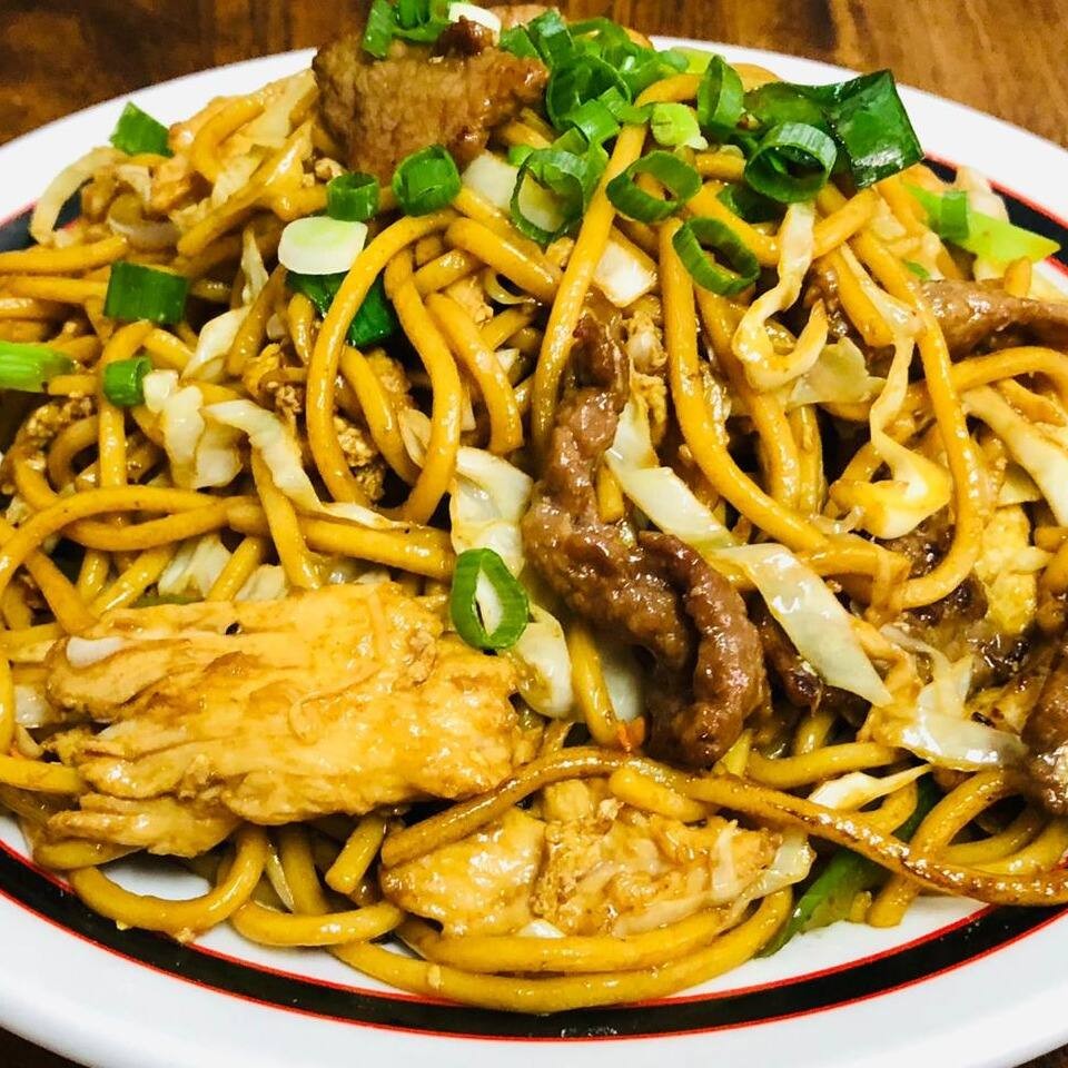 Macarrão caseiro com carne e frango,cebola ,repolho,cenoura ao molho de shoyu ( P:500gramas. M:750gramas. G:1000gramas )