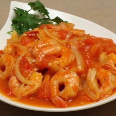 Camarão sem casca,com cebola,cebolinha ao molho picante (pouco apimentado) ( m:750ml g:1100ml )
