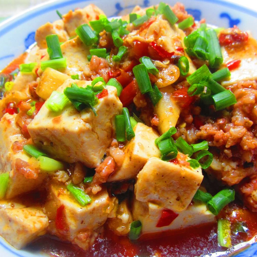 Tofu em cubos,com frango moida ao molho apimentada fraco