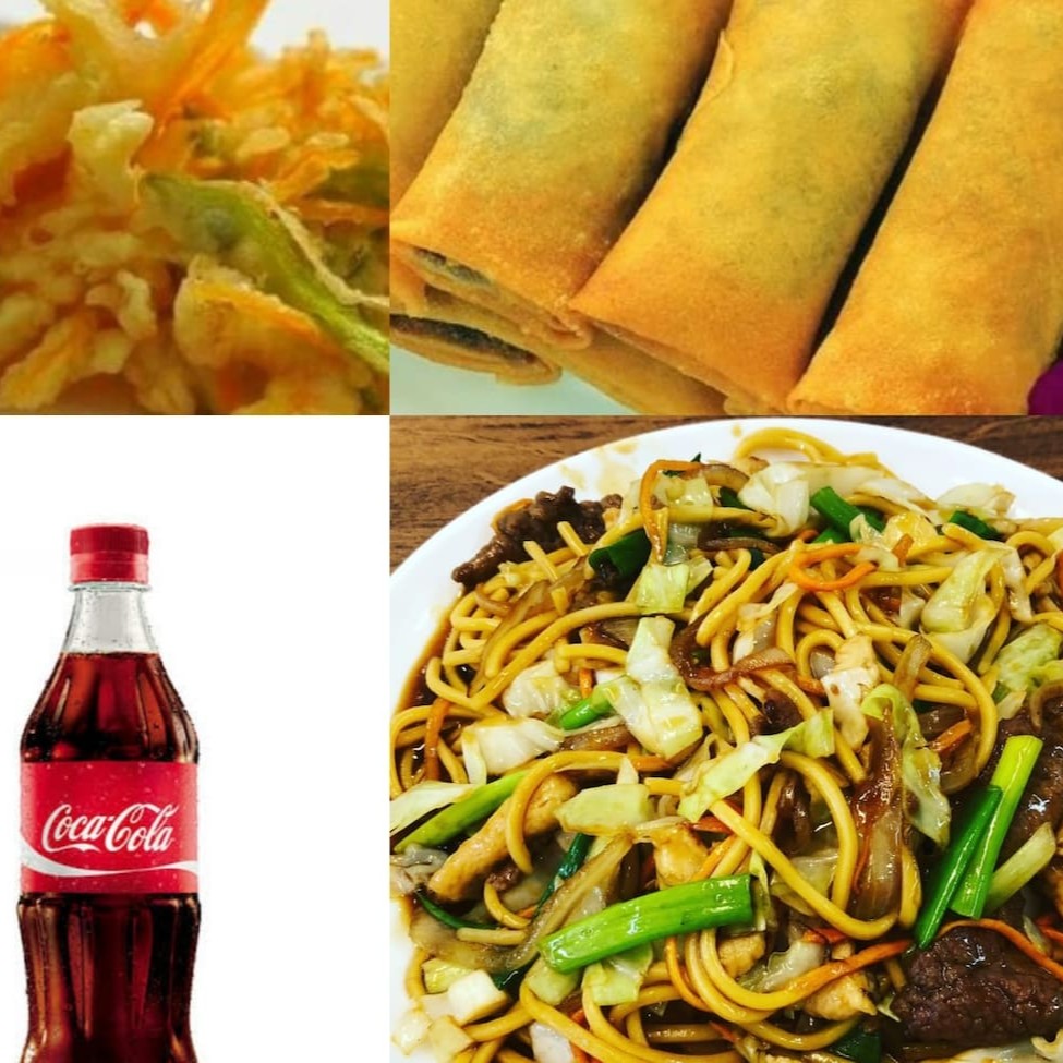 (2 yakissoba simples 500ml) + 2 Rolinho primavera + 2 tempurá de legumes + coca cola 600ml )