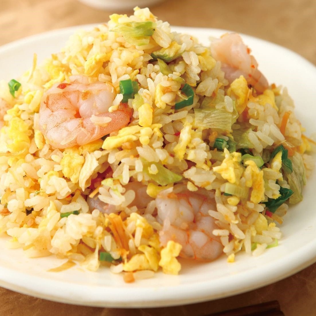 Arroz com ovo,camarão,cenoura,cebolinha com molho de soja na wok