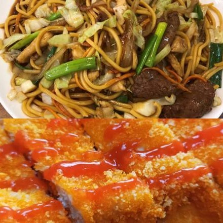 1 yakissoba simples 500ml + 1 rolinhos primavera + 1 tempurá de legumes.