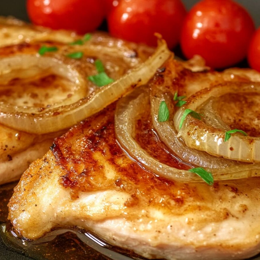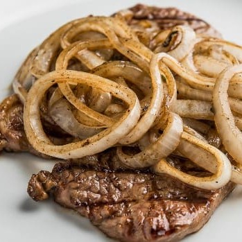 Filé de frango grelhado acompanhado com cebola no molho shoyo, feito na hora! Acompanha arroz, feijão.