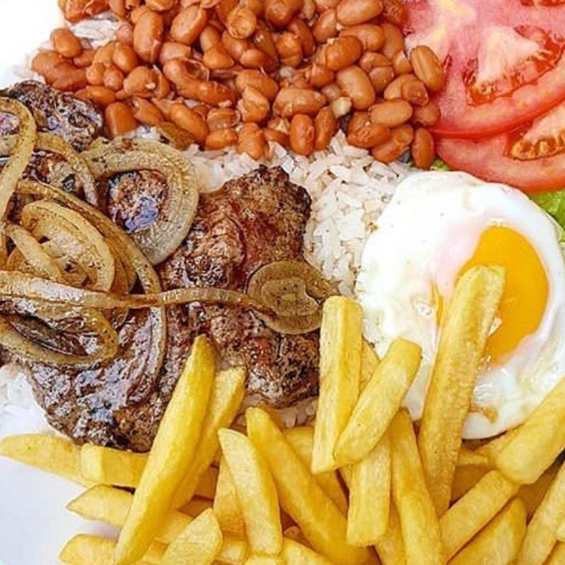 bife de contra filé batata frita salada separada arroz e feijão
