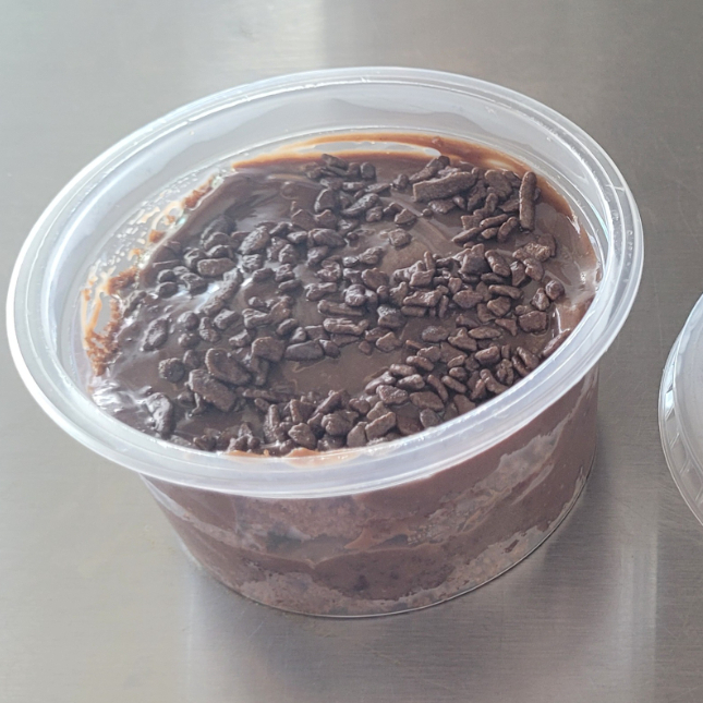 Delicioso Bolo de Pote sabor brigadeiro preparado com muito carinho.
