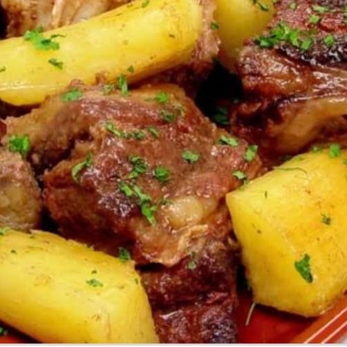 Arroz, feijão, farofa, fritas, salada do dia e picanha suína ao molho