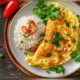 Omelete fofinha e bem caprichada, servida com arroz branco soltinho, feijão carioca temperado, batata frita crocante e farofa temperada na medida certa. Perfeita para quem deseja um prato completo, simples e cheio de sabor!