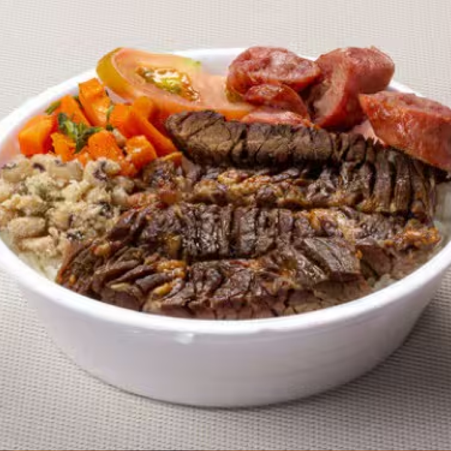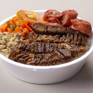 Carne bovina macia e linguiça toscana suculenta, assadas na brasa com aquele sabor defumado inconfundível! Acompanha arroz soltinho, feijão bem temperado, macarrão, alface e vinagrete fresco. Uma marmita completa, acompanhe uma Coca-Cola de 350ml para uma experiência ainda mais saborosa do começo ao fim.