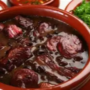 Feijoada completa e caprichada! Feijão encorpado com linguiça, bisteca e torresmo crocante, acompanhados de arroz soltinho, couve refogada, farofa saborosa e molho caseiro. Uma marmitex generosa, perfeita pra quem ama um prato farto e cheio de sabor!