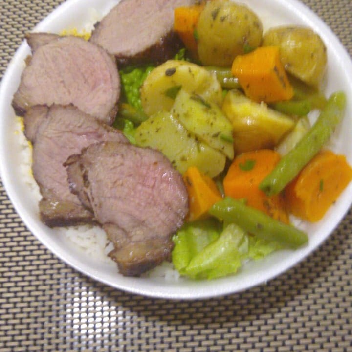 (+-500gr).arroz,feijão,legumes e filé de frango.
