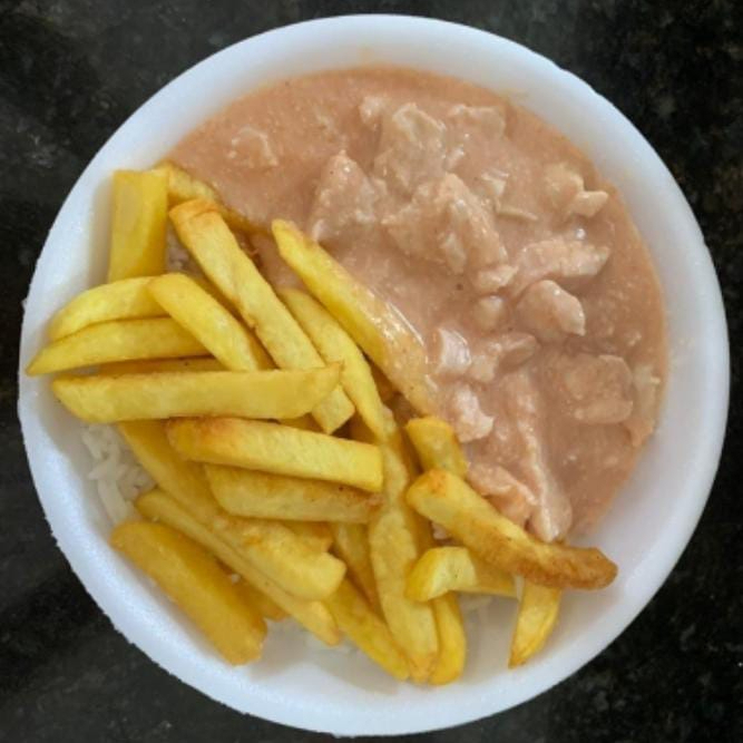 Strogonoff de Frango, Arroz, Feijão e Fritas