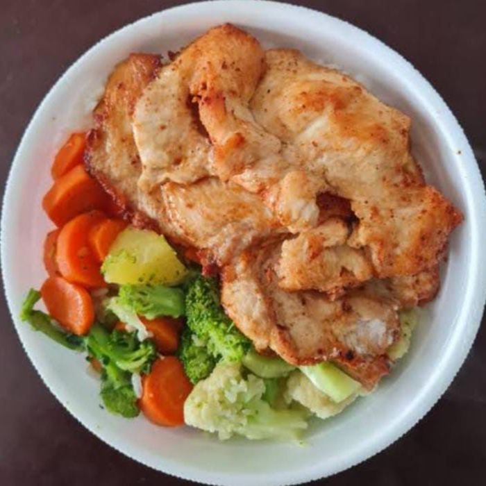 (+-500g) Arroz, feijão, filé de frango grelhado e legumes.