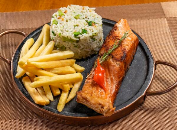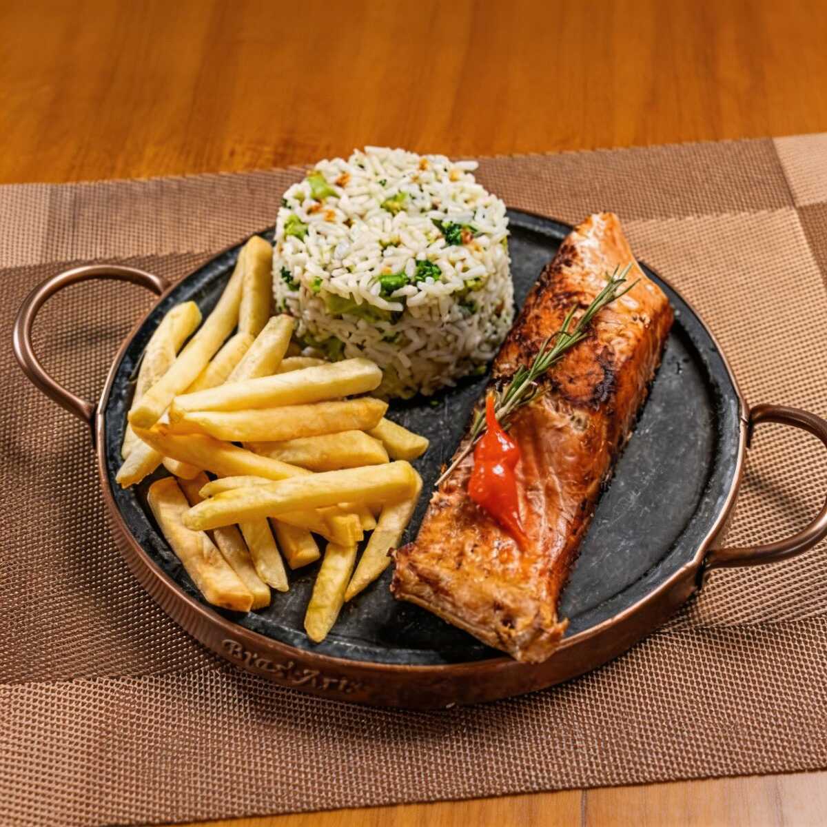 Salmão Grelhado Com Arroz De Brócolis E Fritas