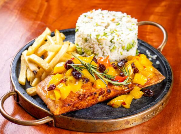 Salmão Ao Maracujá Com Arroz De Brócolis E Fritas