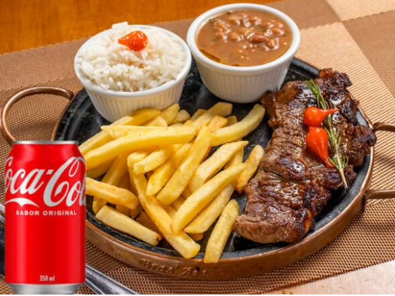 Arroz, feijão, contra filé e fritas + Coca-Cola 350ml