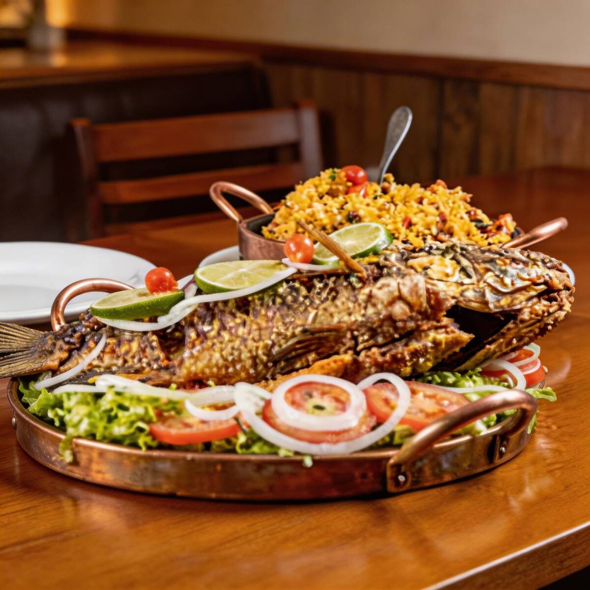 Tilápia frita com salada.