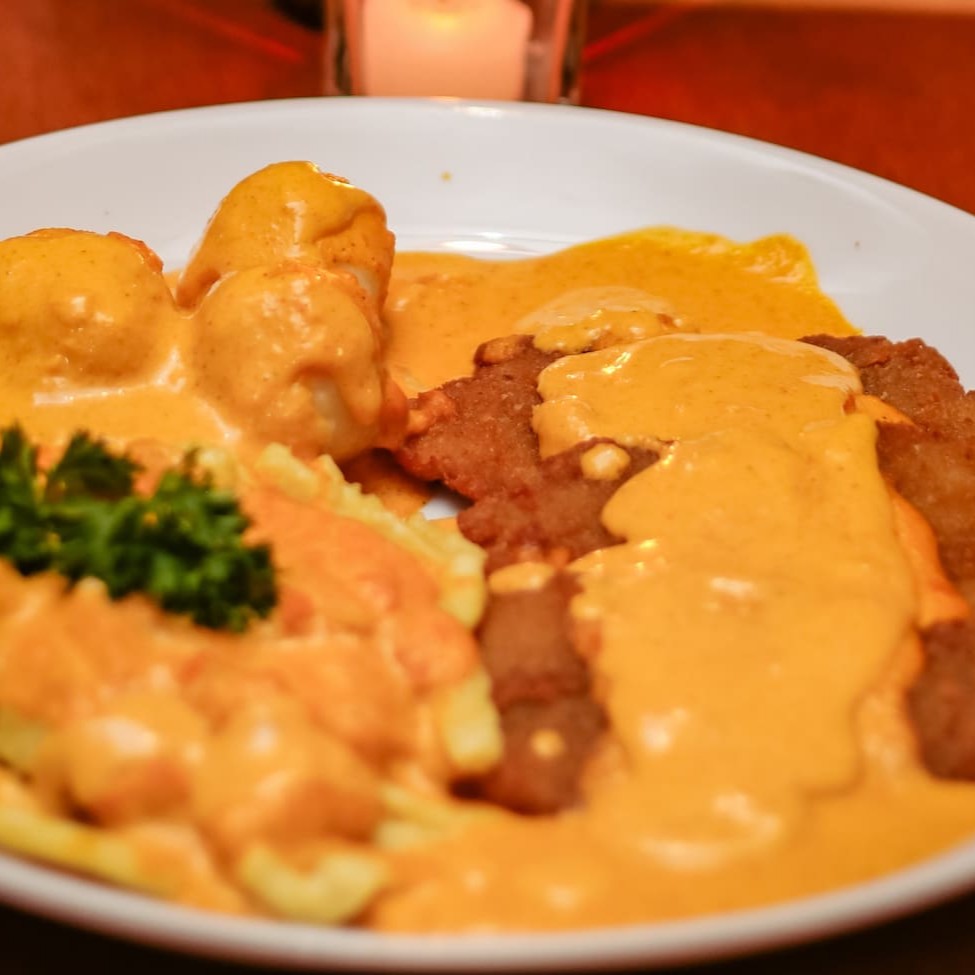 Filé Mignon Angus À Milanesa Ao Molho De Páprica Com Knodel E Spätzel.