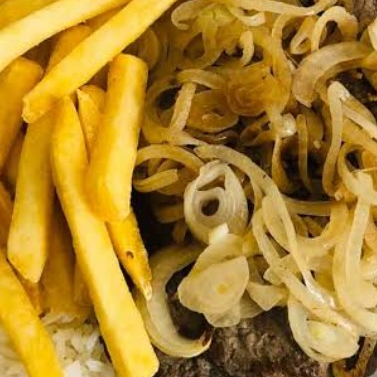 Acompanha,arroz, feijão, batata frita e salada