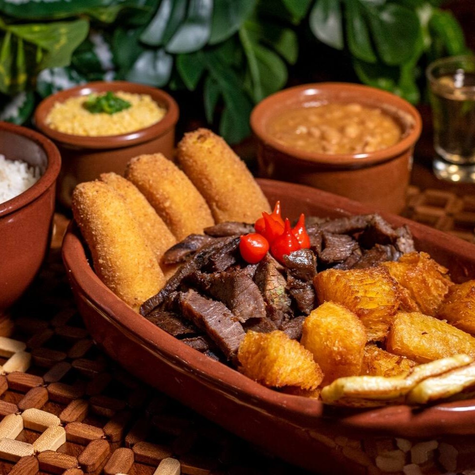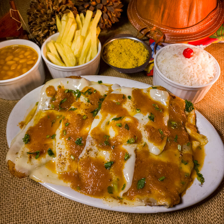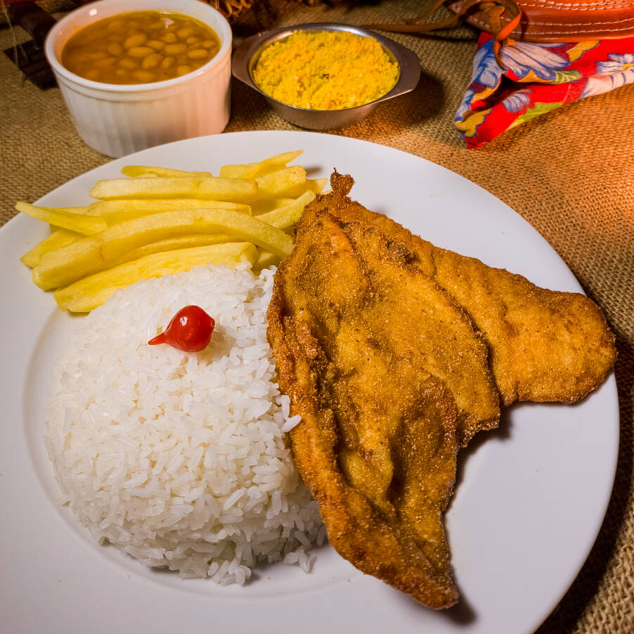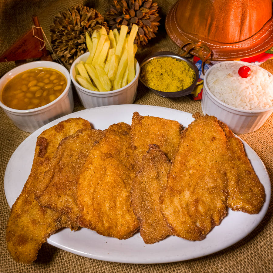 Esse prato é mais conhecido como ´´Chapéu de Couro, uma homenagem aos trabalhadores do nordeste. Carne seca desfiada acebolada acompanhada de 2 ovos fritos, queijos coalho grelhado, arroz, feijão, mandioca frita e farofa. Serve até 3 pessoas. Tempo De Preparo: 30 Minutos