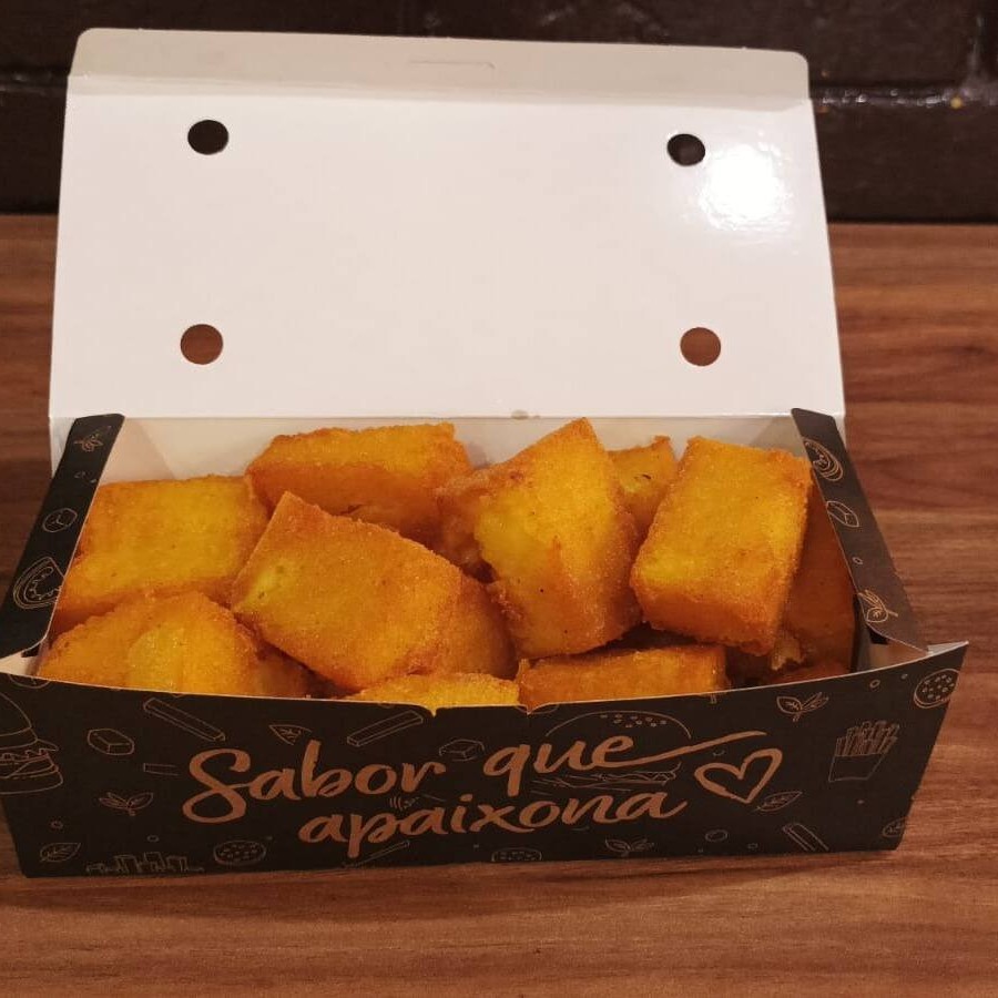 """Desfrute de uma porção generosa de polenta caseira frita, uma explosão de sabor e textura que vai conquistar o seu paladar. Nossa polenta é preparada de forma artesanal, utilizando ingredientes selecionados e técnicas tradicionais, resultando em uma massa macia por dentro e crocante por fora. Cada pedaço é frito até a perfeição, garantindo uma textura irresistível e um sabor inigualável. Perfeito como acompanhamento ou como um petisco delicioso para compartilhar com amigos e família. Peça ago