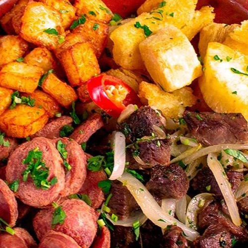 "Deleite-se com nossa irresistível porção de Carne do Sol, acompanhada por deliciosos cubos de queijo coalho, suculenta linguiça toscana e mandioca frita crocante. Cada pedaço é uma explosão de sabores do Nordeste, com a carne do sol marinada e grelhada para alcançar a perfeição no sabor e na suculência. Os cubos de queijo coalho adicionam um toque de cremosidade e um sabor inigualável, enquanto a linguiça toscana traz um tempero autêntico e marcante. E para completar essa experiência gastronômica, a mandioca frita proporciona uma dose extra de sabor. Esta é a escolha ideal para compartilhar com amigos e família, enquanto desfrutam de momentos memoráveis ao redor da mesa. Peça agora e deixe-se levar por uma verdadeira festa de sabores!"