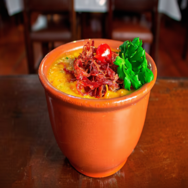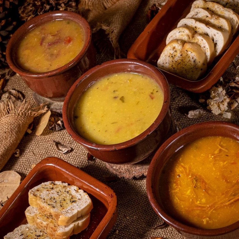 Deixe-se envolver pela calorosa suavidade dos nossos Caldos. Uma sinfonia de sabores que vai acariciar o seu paladar. Cada colherada é uma jornada de prazer, todos acompanham torradinhas temperadas.
