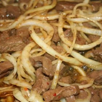 Arroz, feijão, farofa, fritas, salada do dia e fígado acebolado