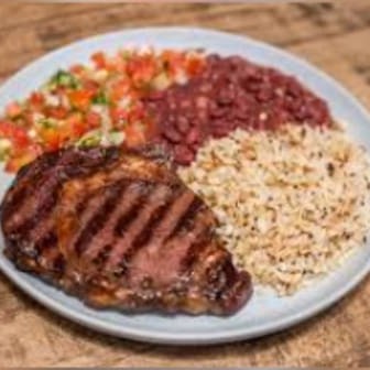 A Marmitex de Churrasco acompanha Vinagrete arroz e feijão