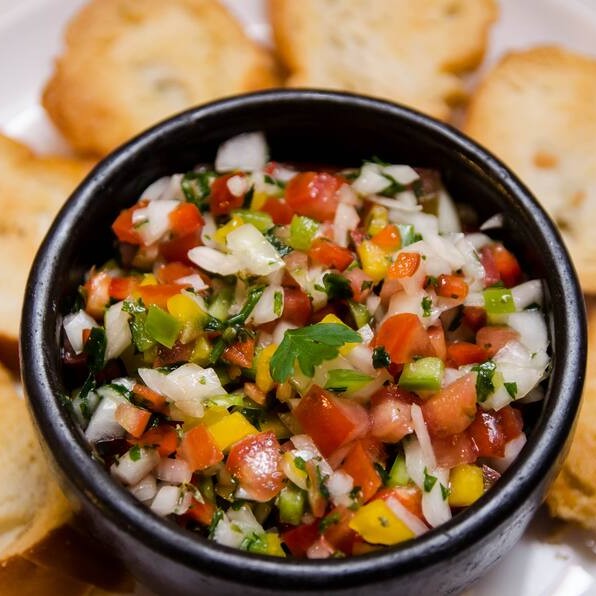Azeite, cebola, alho, tomate, pimentão, sal, limão, cebolinha e salsinha.