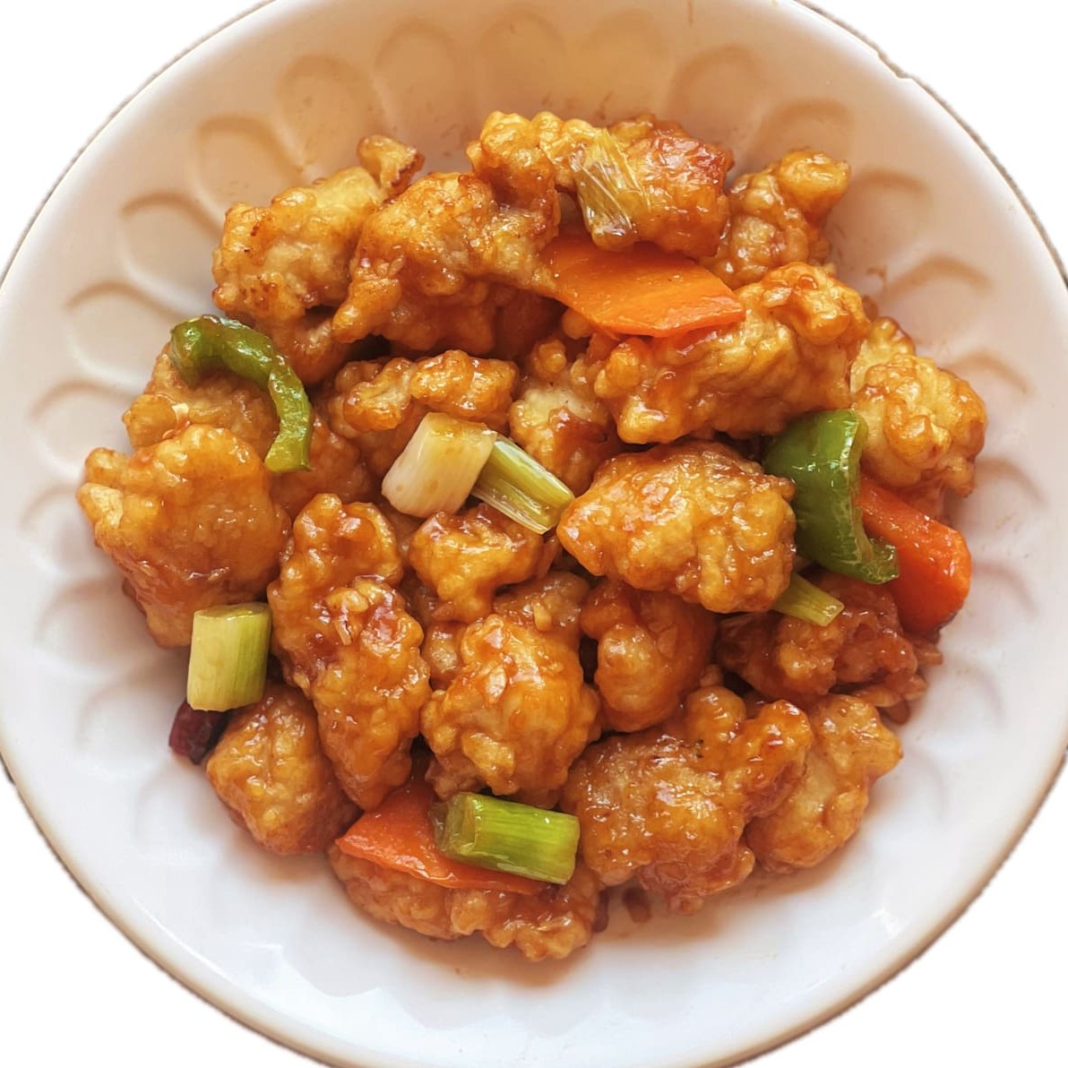 Frango empanado e frito, envoltos em um delicioso molho agridoce. Crocante por fora, macio por dentro!