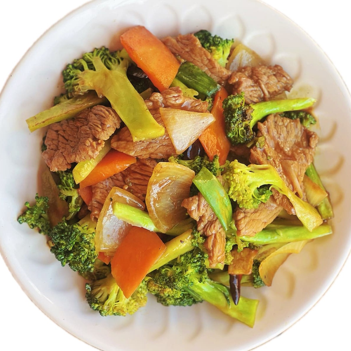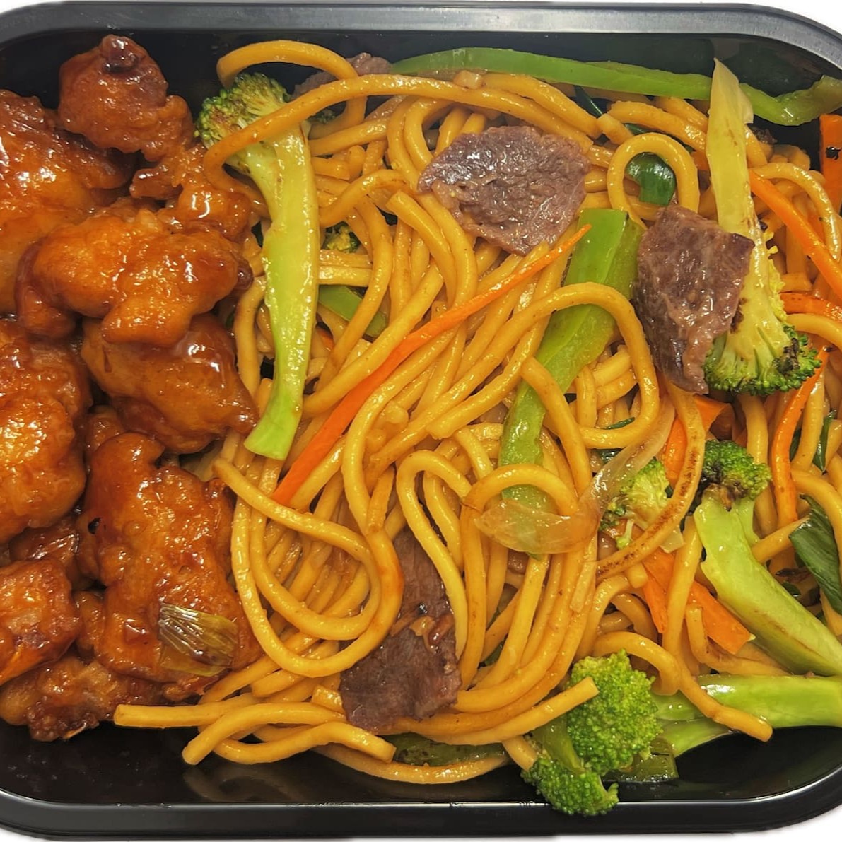 Fatias de carne e frango salteadas em fogo alto, com brócolis, cenoura e cebola, tudo envolto em um delicioso molho shoyu.