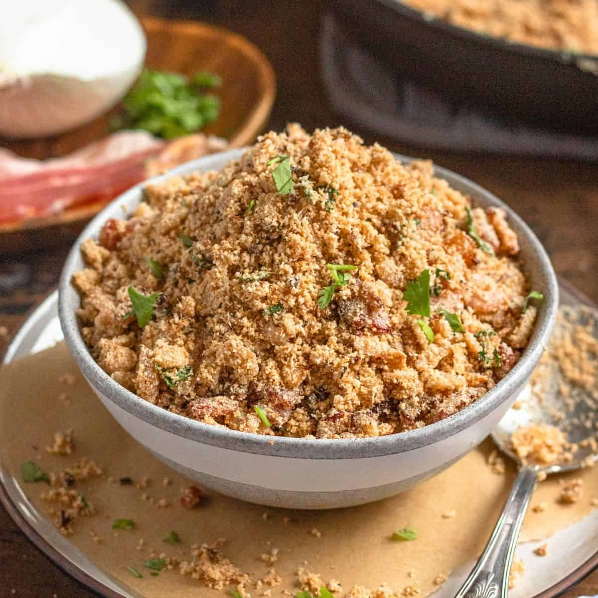 Porção pequena de farofa
