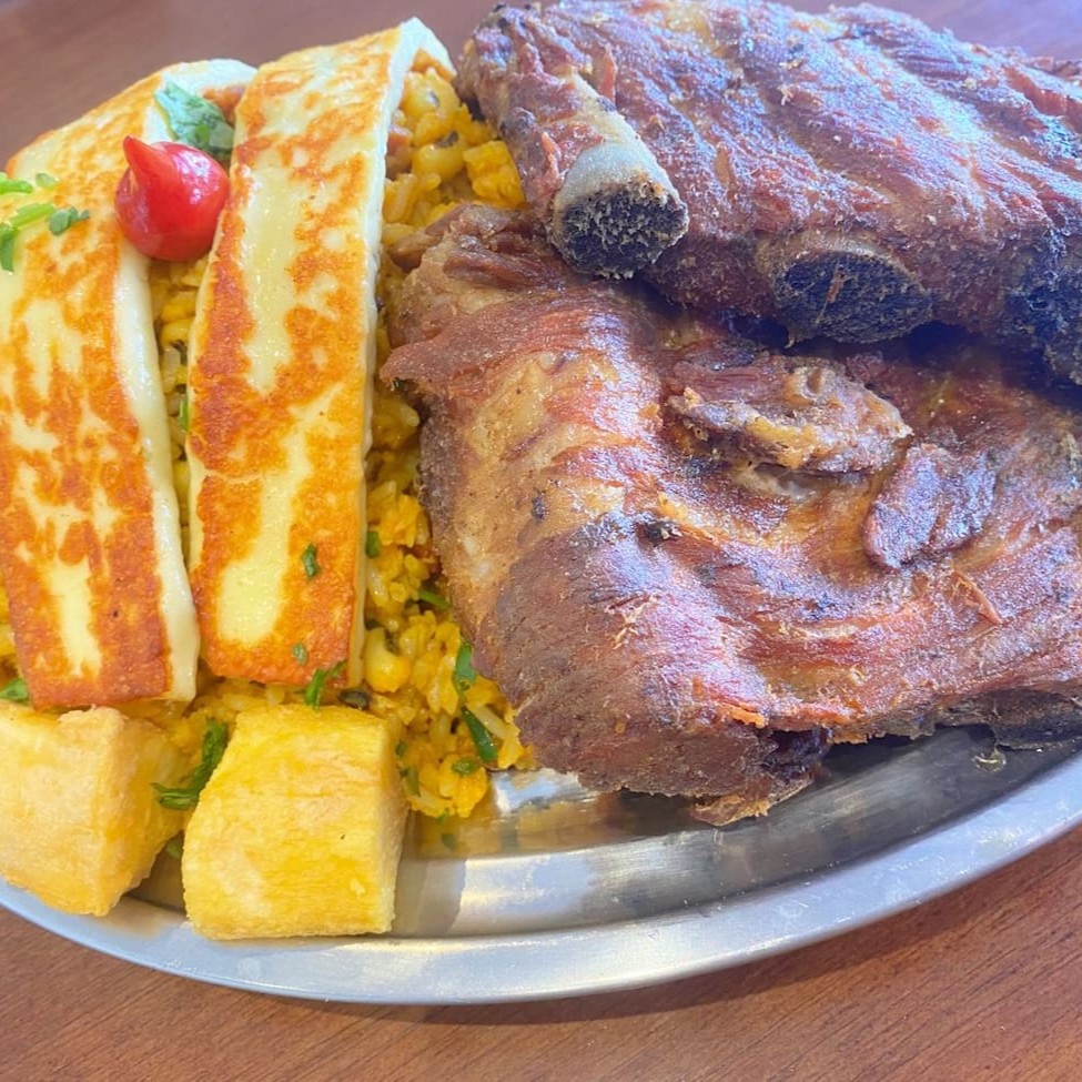 Descubra o sabor autêntico do 'Baião de Dois' em nossa marmita, meticulosamente preparado com feijão fradinho e um colorido mix de pimentões e pimenta biquinho. Acrescentamos uma pitada de calabresa fatiada e bacon em cubos para um toque defumado. A refeição é abrilhantada pela presença de duas generosas fatias de queijo coalho e duas suculentas costelinhas suínas, que adicionam uma textura irresistível ao prato. Para completar, acompanha mandioca macia e salada fresca. Uma refeição caseira perfeita para seu almoço ou jantar, que evoca o conforto da comida caseira. #Marmita #Prato #Almoço #Jantar #Comida #Comidacaseira
