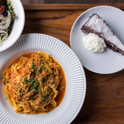 Delicioso nhoque servido com um rico molho bolonhesa feito com carne moída e especiarias aromáticas.