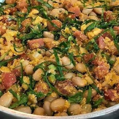 Nosso delicioso feijão tropeiro acompanha arroz soltinho, ovo e salada. Serve bem 1 pessoa.