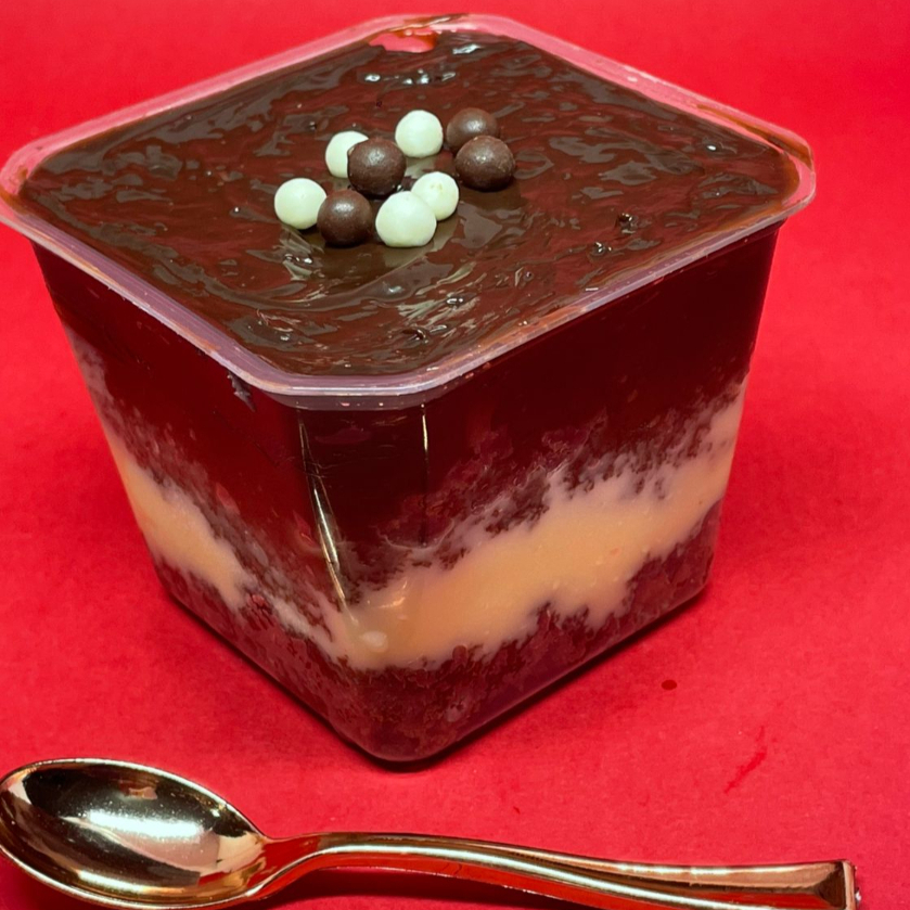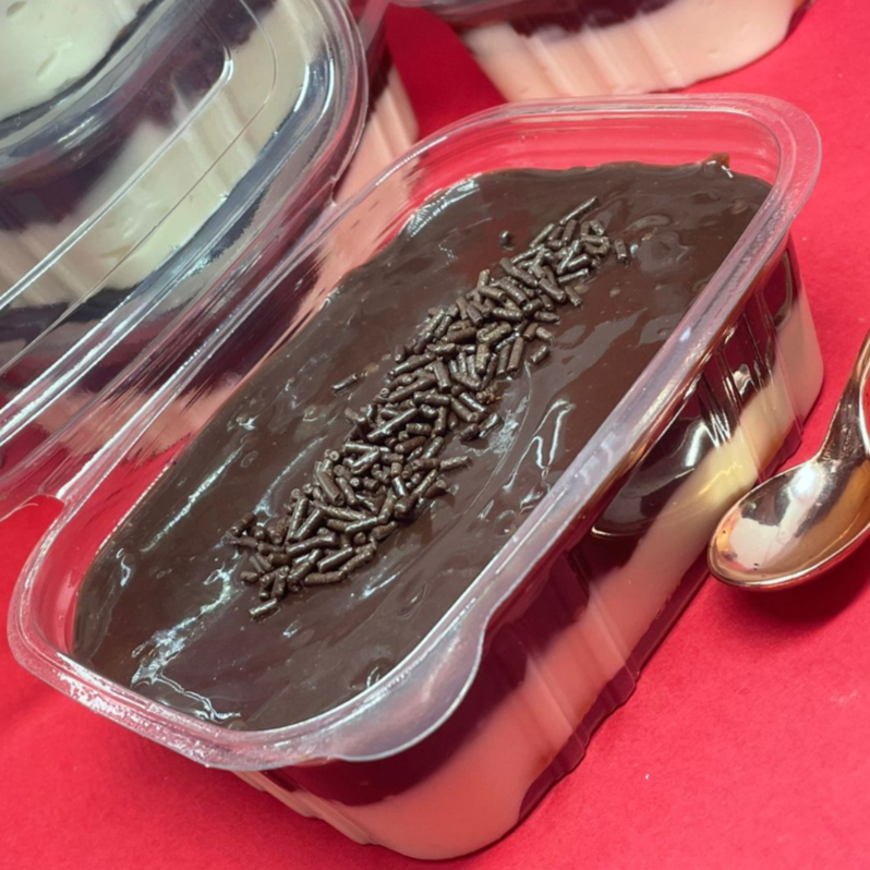 Pavê de creme de baunilha com cobertura de Brigadeiro