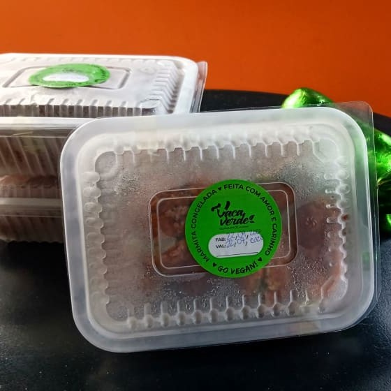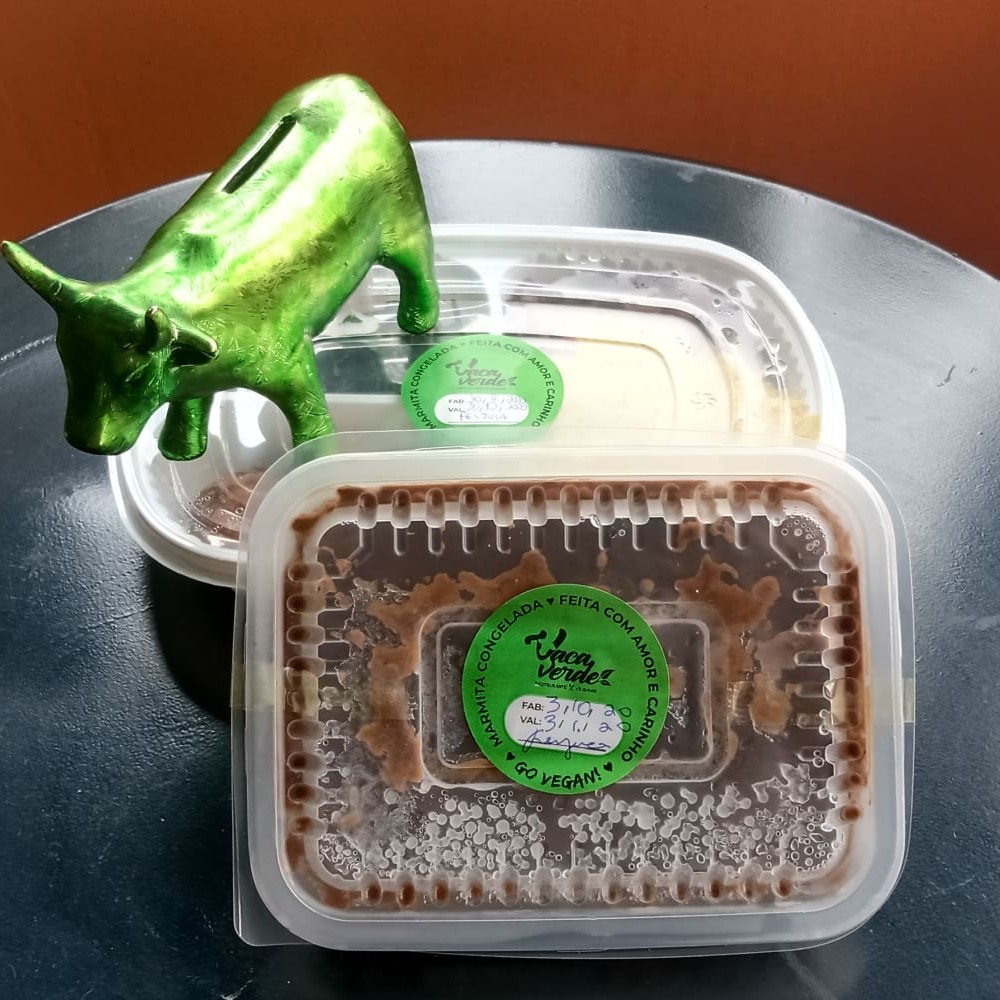 Duas marmitas congeladas com descontão!!! Feita com linguiça calabresa de soja, shitake e especiarias. A primeira (500g) acompanha arroz, farofa acebolada, couve ao alho e bolinhos. A segunda (500g) é uma generosa porção de feijuca. O produtos serão entregues congelados. Tem validade de 3 meses se for estocados no freezer.