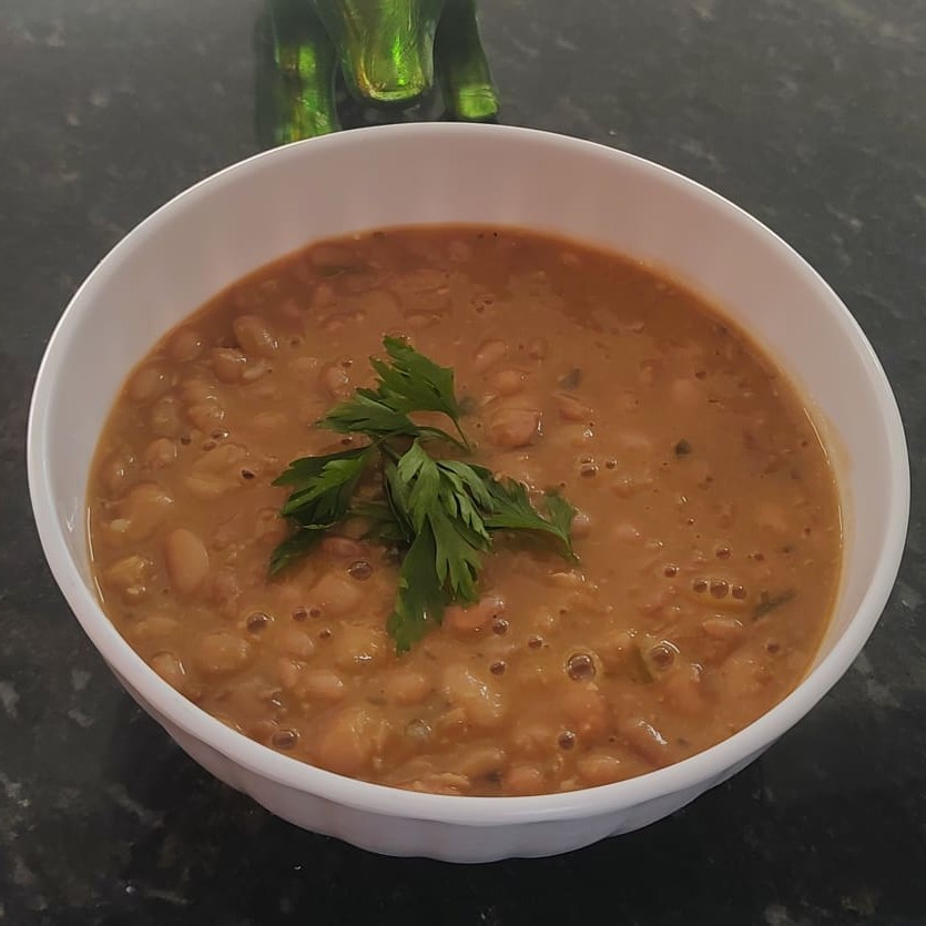Aqui tem proteína! São 200 ml de feijão carioca com aquele temperinho da casa. :-)