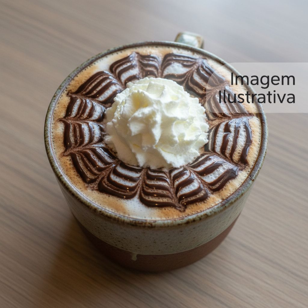 Café espresso com leite vaporizado e calda de chocolate, finalizado com chantilly.